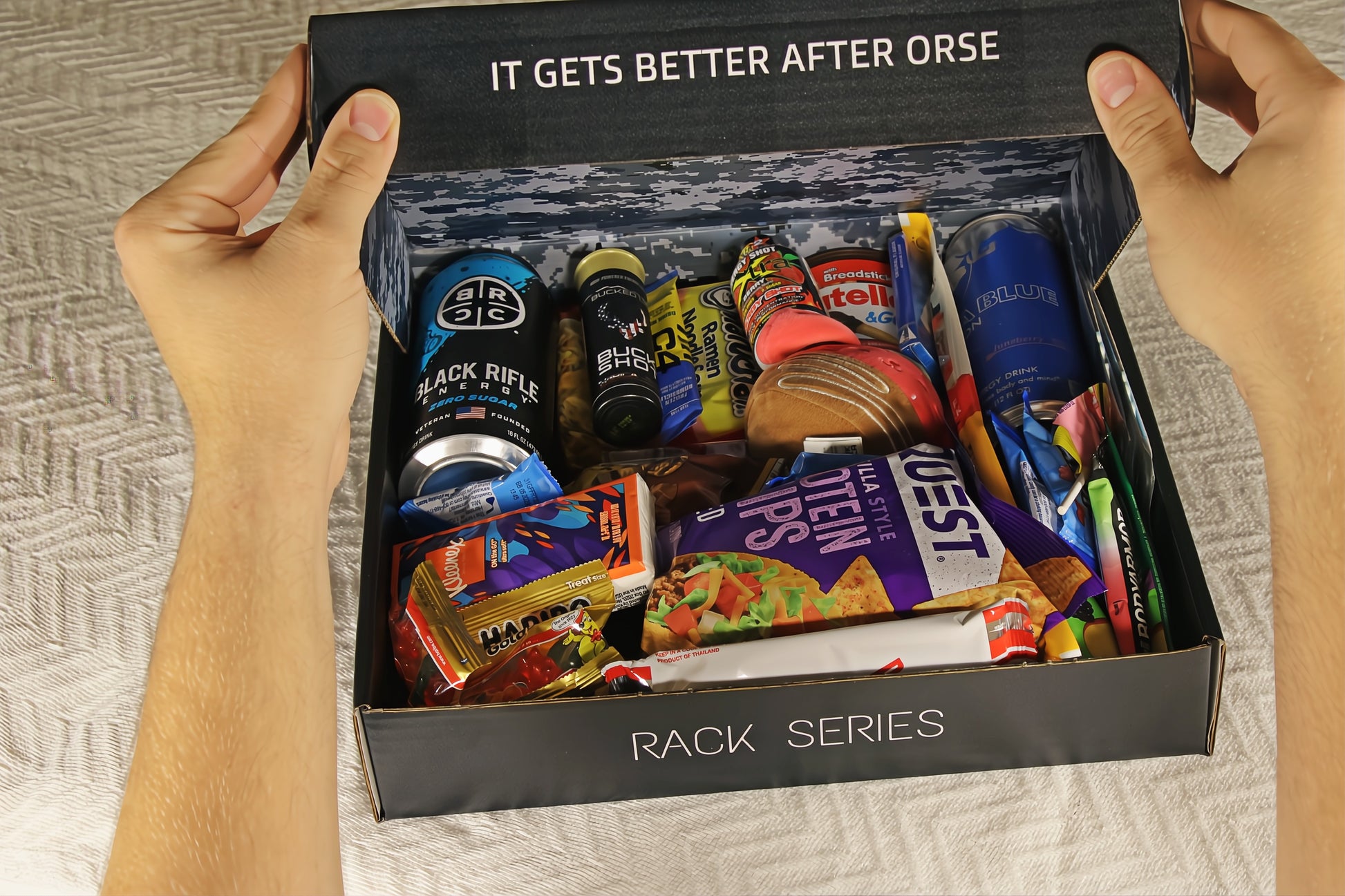 The Rack Series isn't just a handful of snacks and drinks in a cardboard box; it's something familiar in a place that rarely feels that way. When your Sailor is exhausted, homesick, or counting the days, small touches from home make a bigger impact than most people ever see. A single photo, a letter written by you, even the specific flavor of something they love becomes a lifeline during the hardest stretches. This care package tells them, "Someone out there is rooting for you." It turns their rack into a tiny piece of home, and that matters significantly more while underway than you might realize.